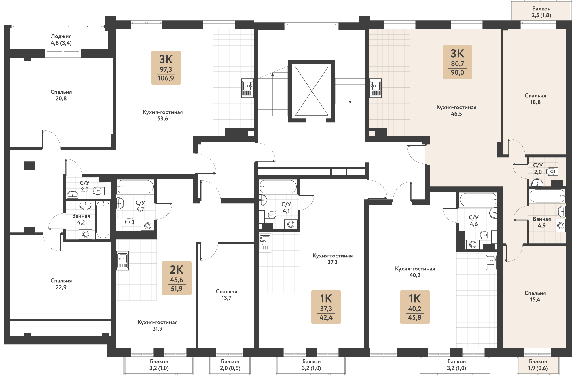 Квартира 90.00 м²