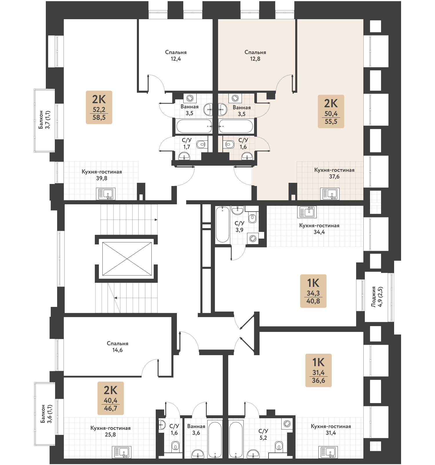 Квартира 55.50 м²